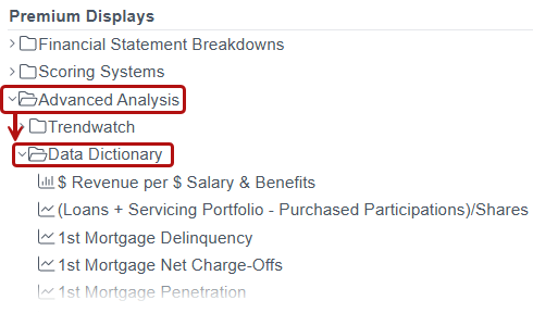 - Peer's Data Dictionary Folder is located in the Premium Displays section
