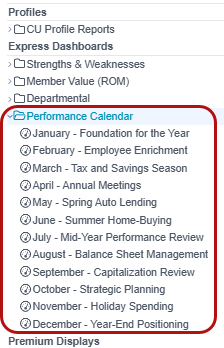 A set of 12 dashboards aligned with a credit union’s seasonal business cycle.