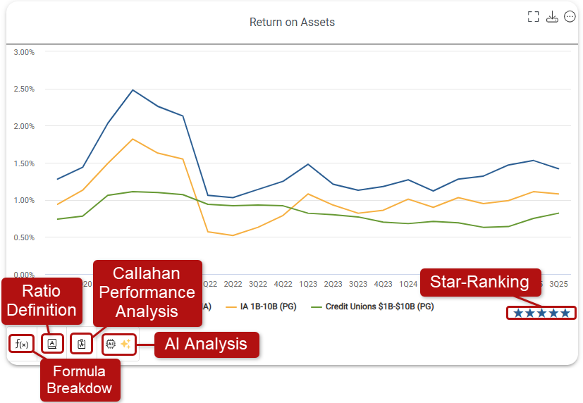 A quick visual summary of how your credit union compares to peers. Ratings reflect performance percentiles within your selected peer comparison.