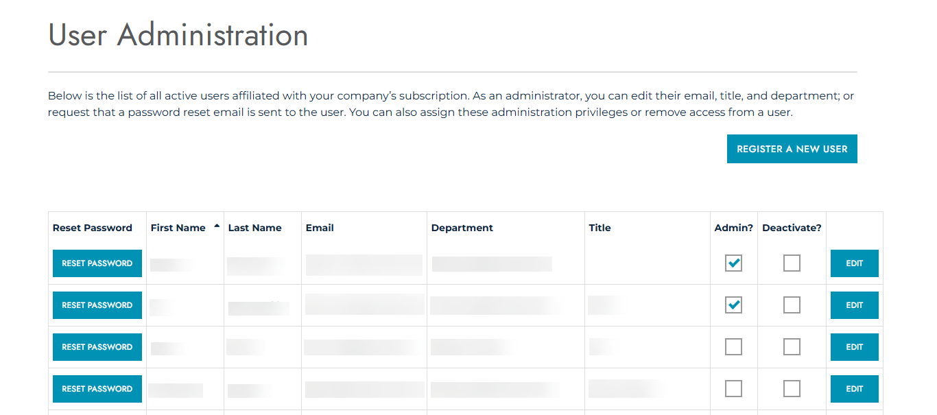 When admins register a new user, they create a temporary password. Users are encouraged update it through the portal.