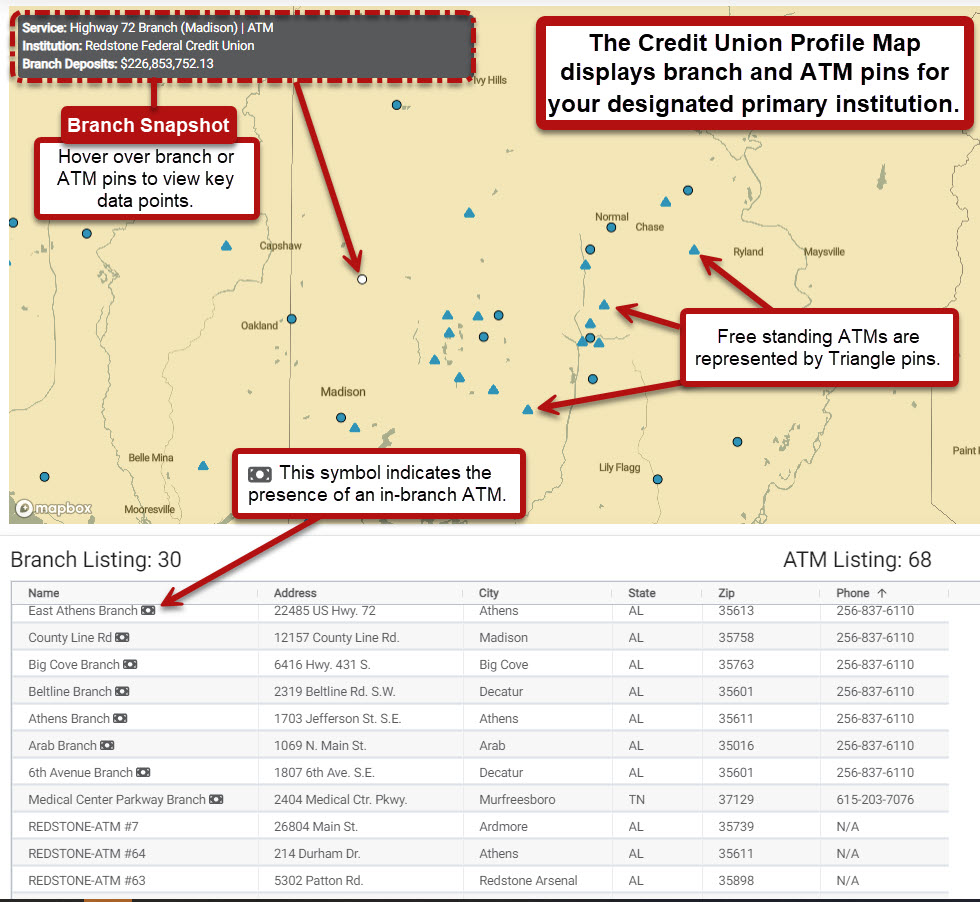 - Scroll down to explore the Branch and ATM map highlights, presence, overlap, and expansion opportunities
