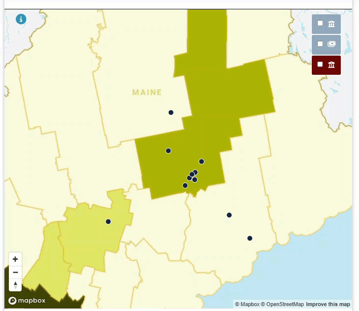 Use the filter checkboxes in the top right of the map to toggle these pin types on or off.