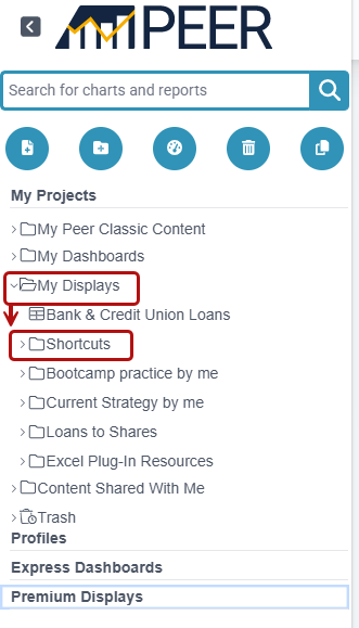Shortcuts are automatically added to their own folder in My Displays within My Projects. From there, you can organize them into your custom folders or dashboards to fit your structure and workflow.