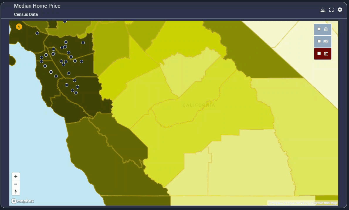 - Branch & Tract Snapshots: Hover over a branch pin or census tract to see key data points.