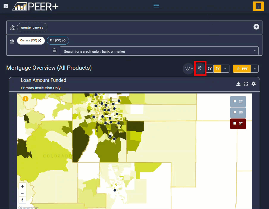 Maps in Peer+ help credit unions add geographic context to their market analysis.